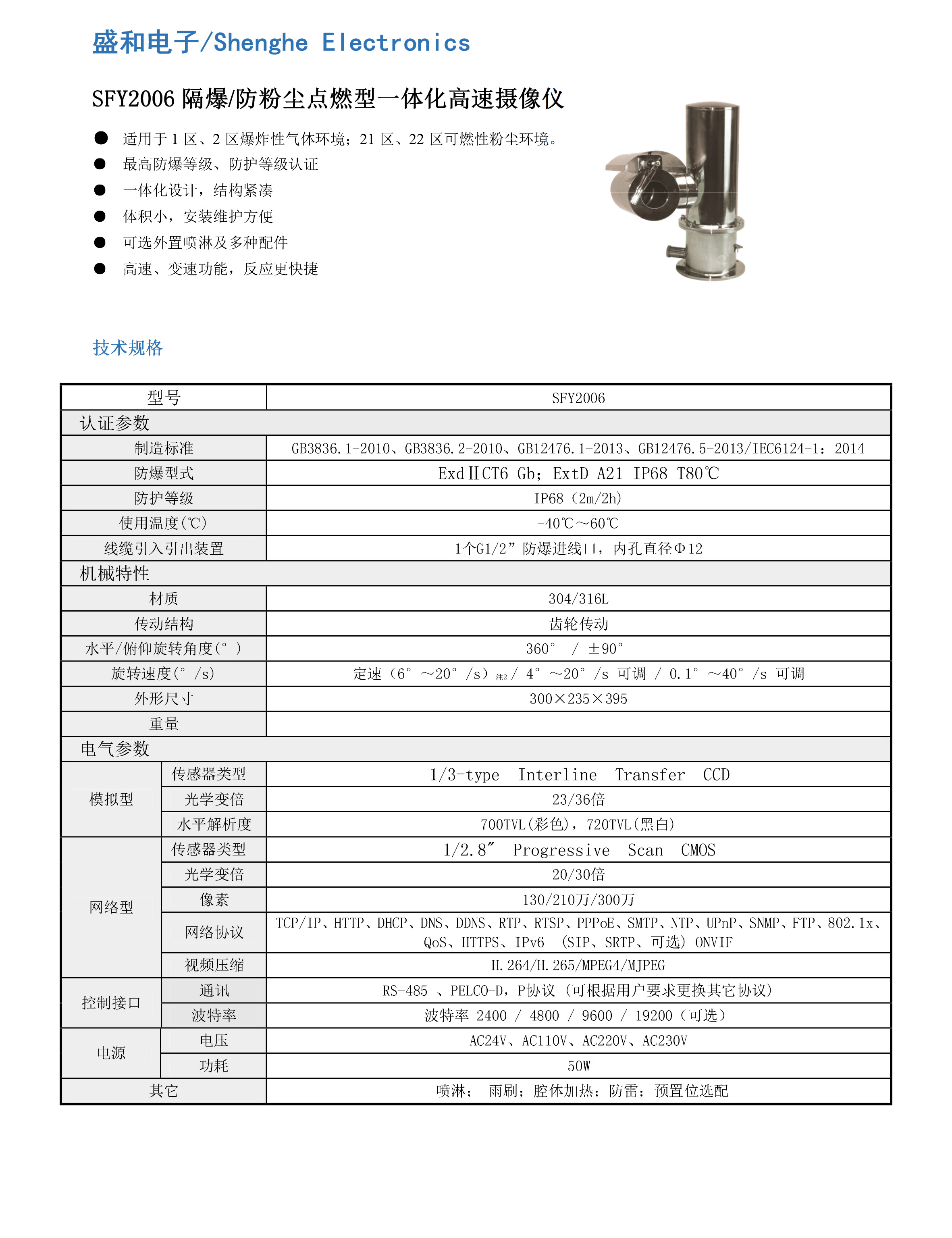 SFY2006隔爆/防粉塵點燃型一體化高速攝像儀