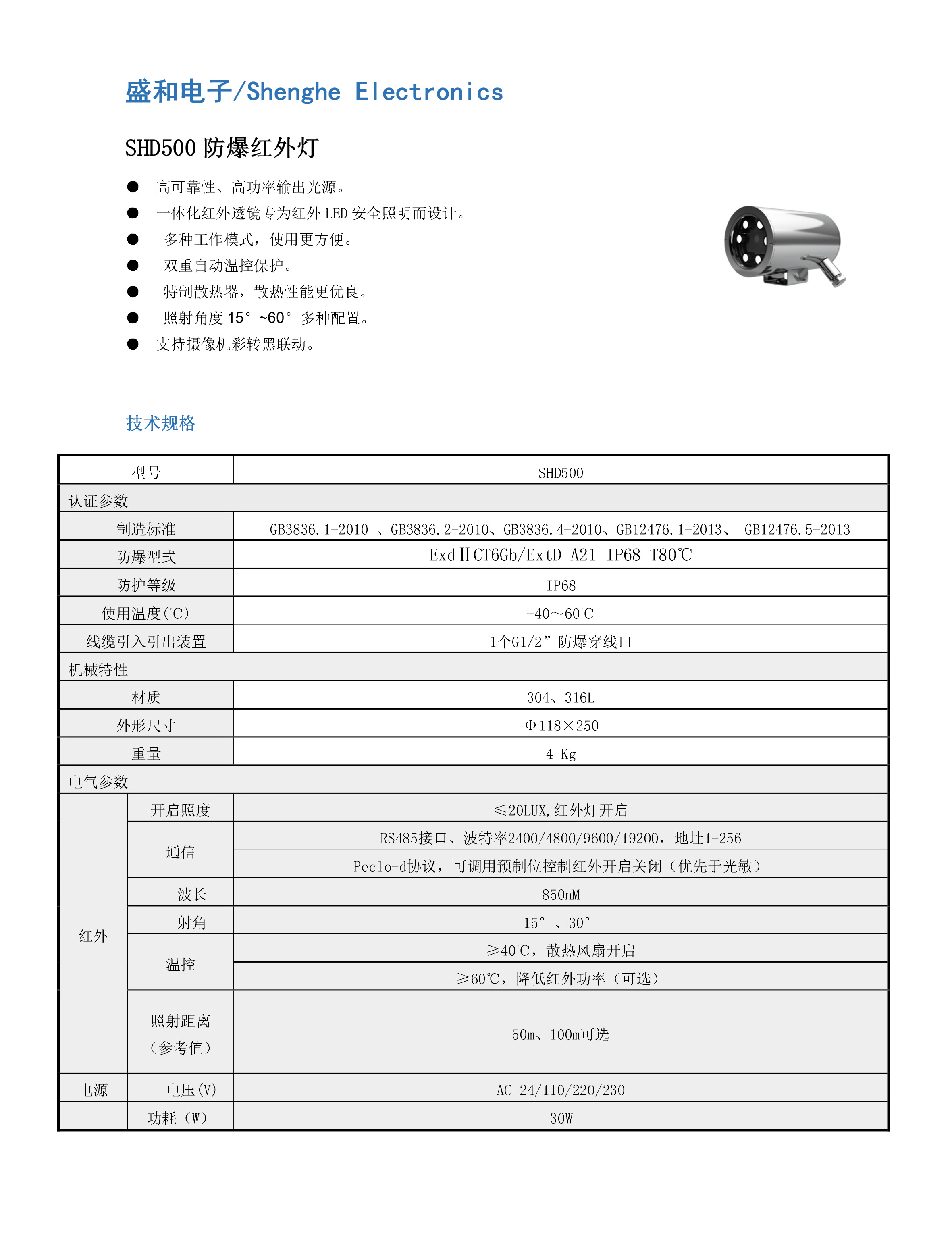 SHD500 防爆紅外燈