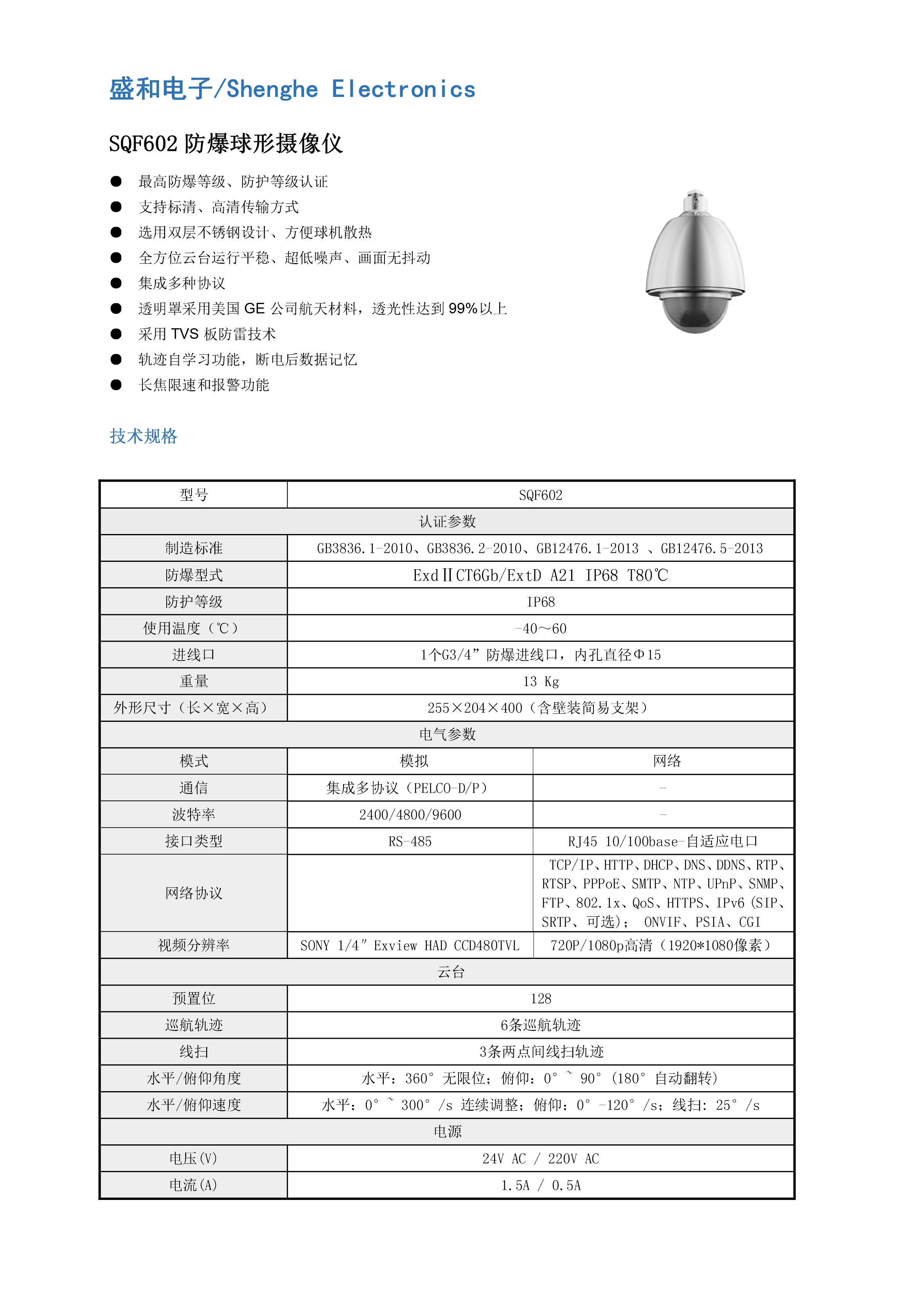 上一個產品:SQF601隔爆/防粉塵點燃型球形攝像儀